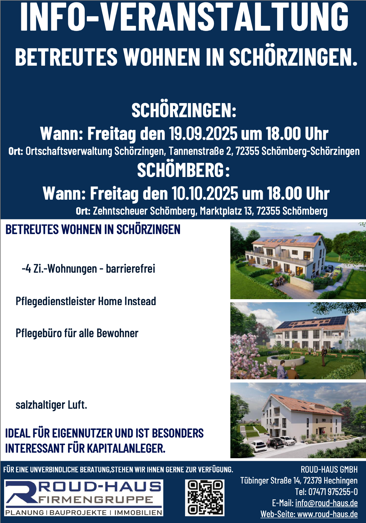 Am Freitag, den 10.10.2025 um 18:00 Uhr, findet in der Zehntscheuer Schömberg (Marktplatz 13, 72355 Schömberg) eine Informationsveranstaltung zum Projekt Betreutes Wohnen in Schörzingen statt.